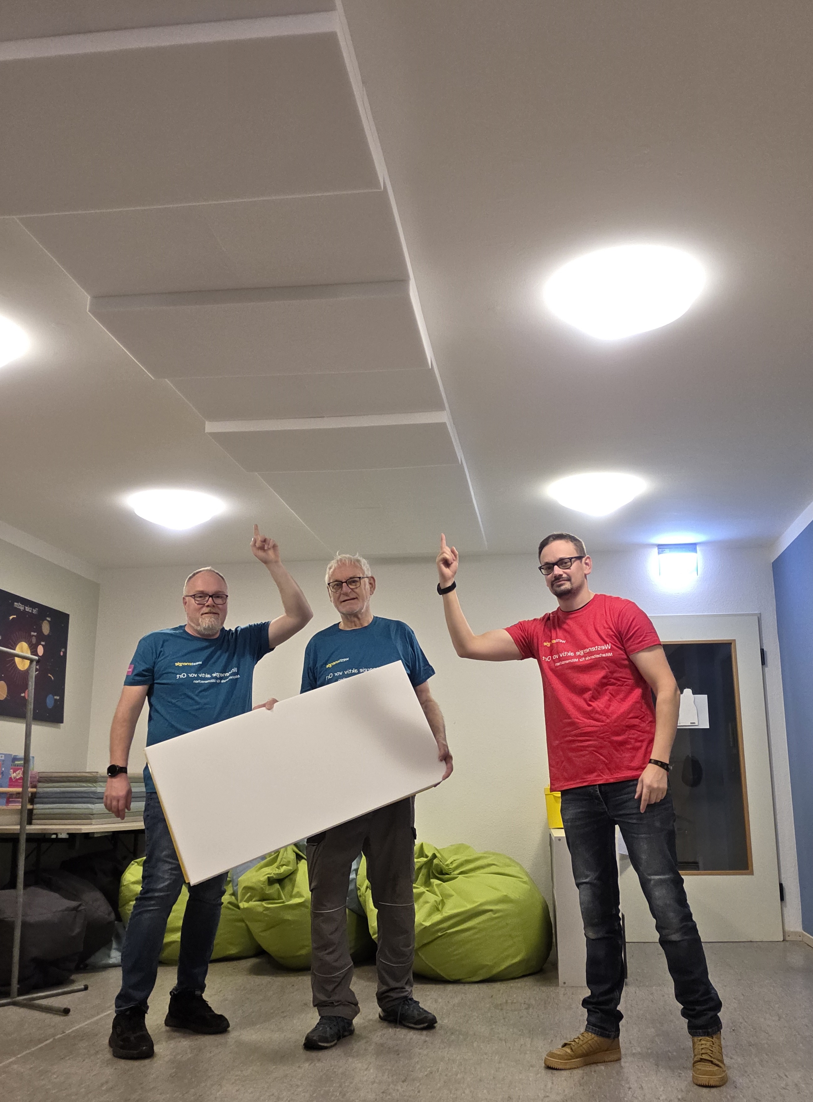 Begleitet durch unseren Projektpaten Andre Fluhrer bewarben wir uns gleich mit zwei Schallschutzprojekten: Zum einen sollte die Geräuschkulisse in unserem Kids-Treff verbessert werden, zum anderen der Lärmpegel im Bistro unserer Kita. Zwei Projekte, die direkt dem Wohle unserer Kinder zugutekommen.