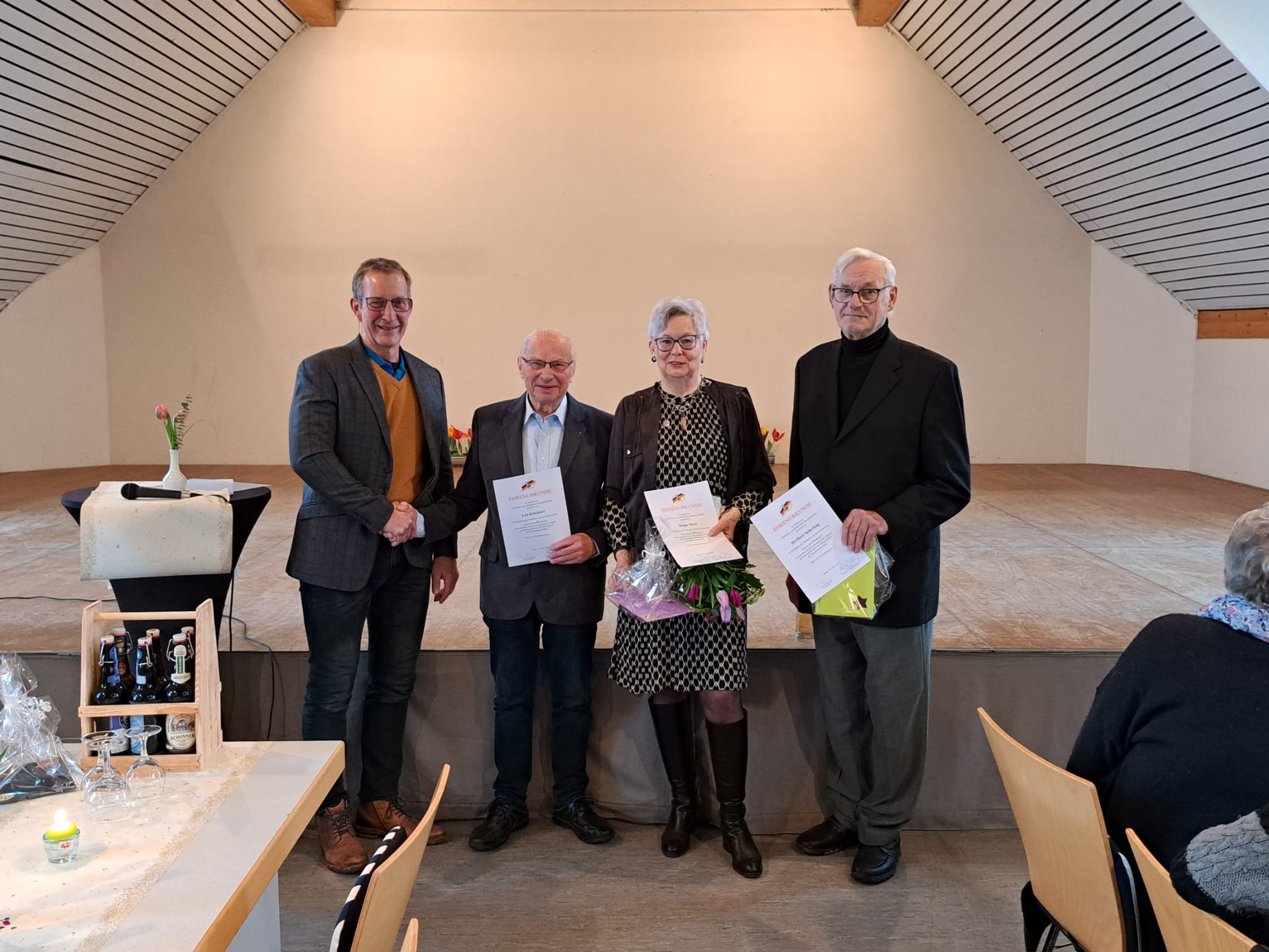 Helga Fürst und Heribert Scherhag wurden für ihr langjähriges Engagement von jeweils 25 bzw. 34 Jahren im Gemeinderat und als Beigeordnete geehrt. Leo Klöckner bekam eine Dankurkunde für insgesamt 55 Jahre als Gemeinderatsmitglied und 25 Jahre als Ortsbürgermeister. Die Ortsgemeinde bedankte sich bei den Geehrten mit einem Präsent.