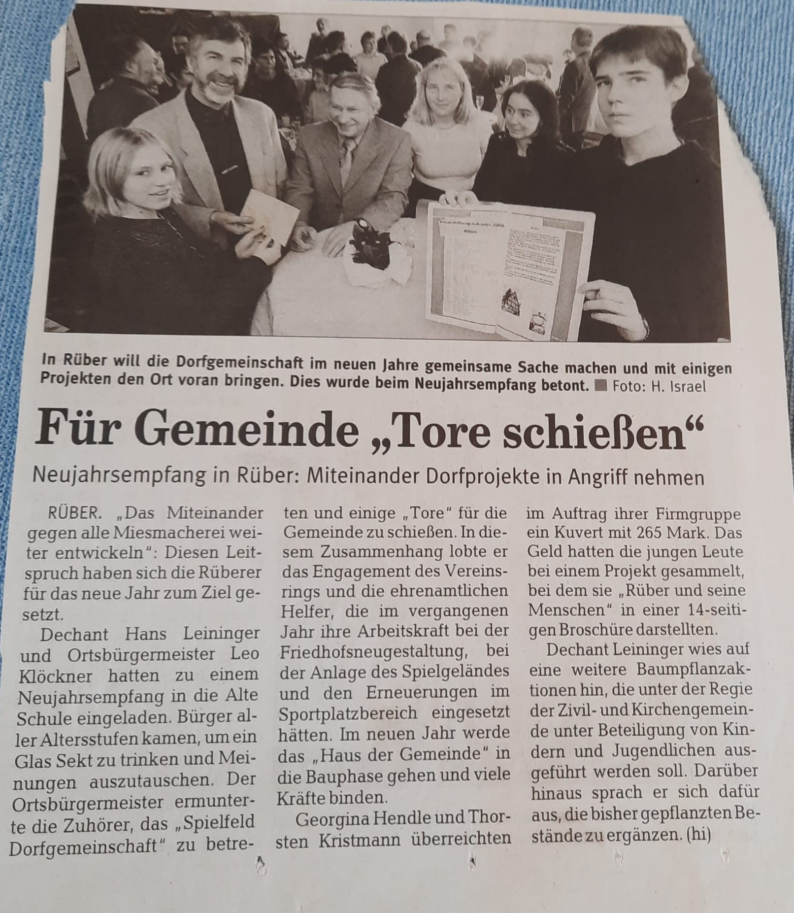 1953 Straßeninstandsetzung Kirchstraße. Die verlängerte Kirchstraße bot im Verhältnis zu dem, an die Hauptstraße des Dorfes anstoßendem, vorderen Teil der Kirchstraße bislang einen trostlosen Anblick dar. Dieser Teil der Kirchstraße war im Jahr 1938 in vorbildlicher Weise gepflastert worden. Kein Wunder darum, wenn die Anwohner der verlängerten Kirchstraße den Wunsch nach ähnlichen Straßenverhältnissen hegten. Der Weiterbau scheiterte damals, weil die Feldanlieger sich nicht bereit erklärten, den erforderlichen Geländestreifen, der am gleichmäßigen Ausbau der Straße fehlte, an die Gemeinde abzutreten. Erst bei der Umlegung vor einigen Jahren wurde der Gemeinde dieser Streifen zugeteilt. Im Juli dieses Jahres wurde das Grundbett des neuen Straßenteiles ausgehoben. Nachdem seitlich die Rinnen gepflastert waren, wurde die Packlage gesetzt und mit Kleinschlag eingewalzt. Mit mehreren Lagen Teersplitt wurde eine staubfreie Decke geschaffen, sodass die Anwohner jetzt an dem schönsten Straßenteil des Ortes wohnen. Mit 16.800 Mark hat die Gemeinde so ein prächtiges Straßenbild geschaffen.